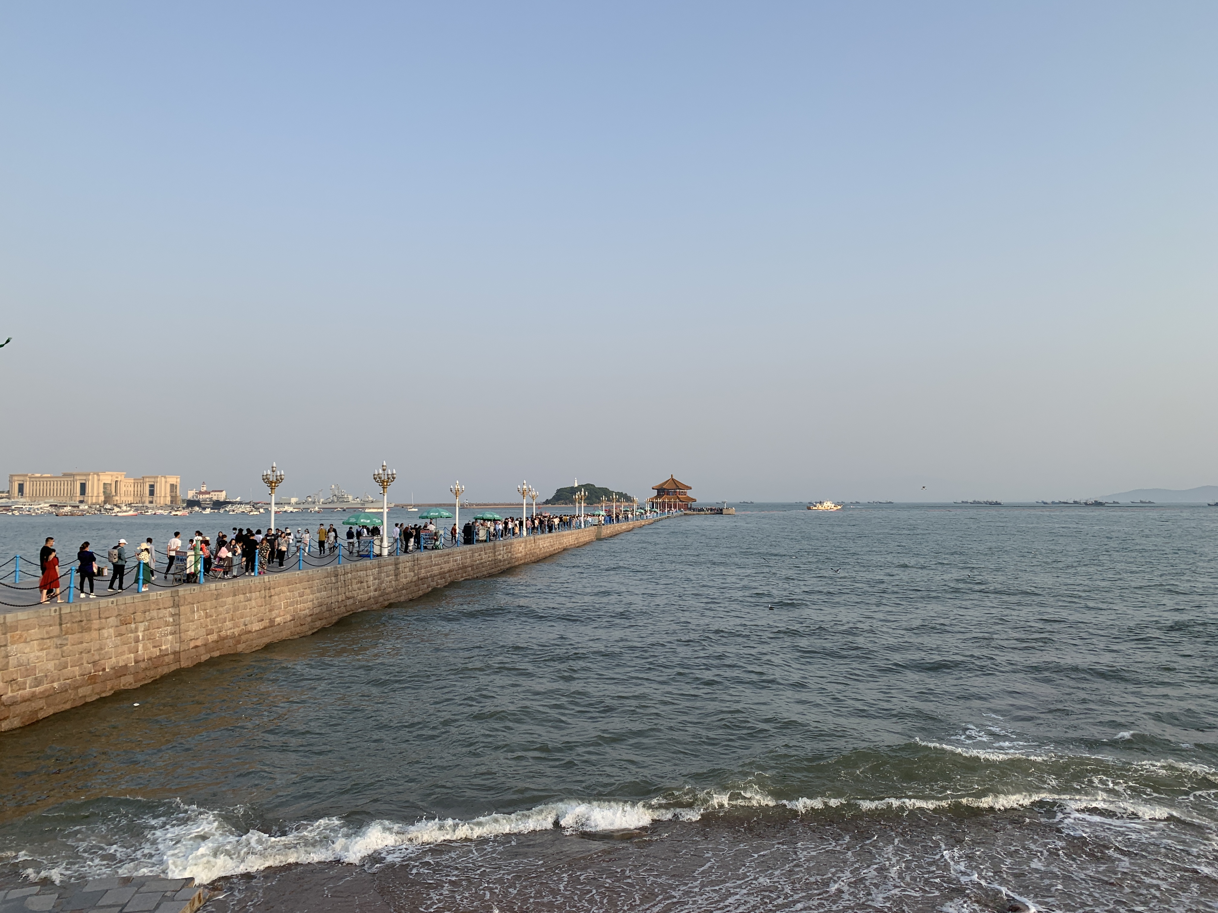 从教堂出来后,我们徒步去栈桥。没错,青岛的景点靠的就是这么近,走路或打车就是最好的通勤方式。这一路段沿途是热闹的市区,和其他城市相比没区别,所以不太有意思。